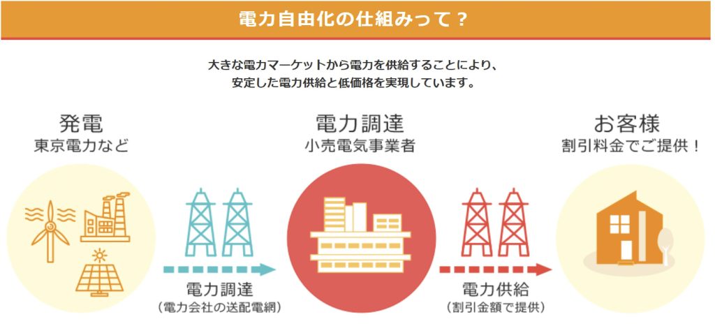 ※あくまで変更点は小売り部門のみ、従来の電気発電や送配電、非常時の対応は今まで通り管轄の地域電力(東京電力、中部電力etc)が行うので安心安全!
